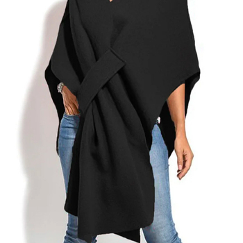 معطف صوفي غير رسمي جديد للخريف والشتاء الأكثر مبيعاً سترة صوفية غير منتظمة بلون سادة بأكمام سبعة أرباع