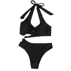 ชุดว่ายน้ำบิกินีสำหรับผู้หญิงชุดว่ายน้ำคอเชือกแขวนคอมีกากเพชรดีไซน์ใหม่2025